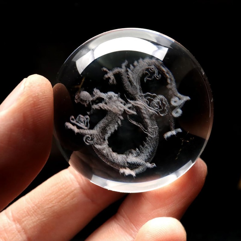 Introducing an auspicious carving that laser engraved the dragon of the 2024 zodiac dragon on a glass ball.
