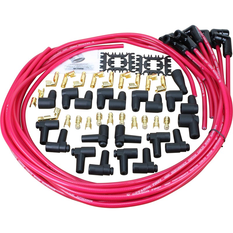 Dragon Fire Retro Series Transparent Red and Black Ceramic True Universal Spark Plug Wire Set For All Buick Chevy Chrysler Dodge Ford Mopar Pontiac V6 V8 SBC BBC SBF BBF and More Oem Fit PWJ218-BTR
