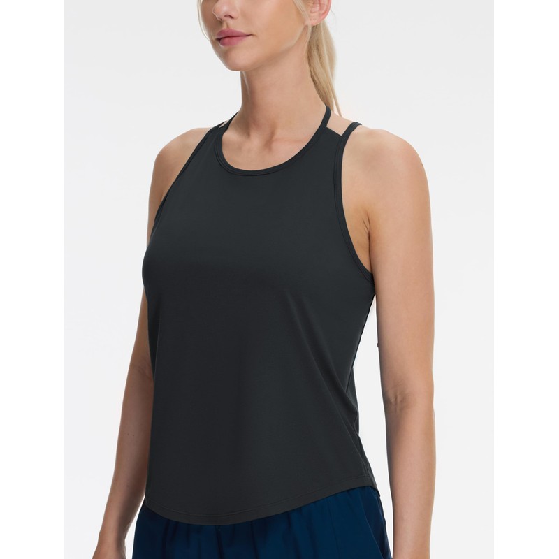 - Curved Hem Design:The curved hem design of the yoga tank tops with straps visually increases the layering of the garment and can better modify the body proportion.