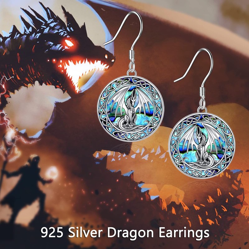Dragon/Mermaid/Wolf Earrings for Women Girls Sterling Silver Abalone Shell Irish Celtic Knot Dragon Earrings Jewellery Gifts, Sterling Silver, Abalone