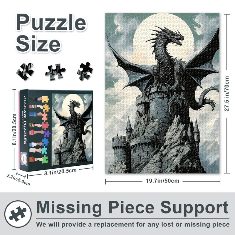 Dragon Puzzles Dragon on the Hill in the Moonlight Puzzle for Adults 1000 Pieces Fantasy Jigsaw Puzzles 1000 Pieces, Magic Puzzle, 19.5 x 27.5 Inch
