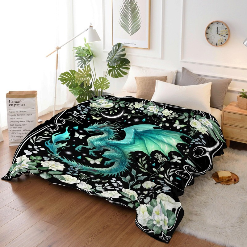 - 【EASY CARE】:Our dragon throw blankets are made of soft flannel material, machine washable in cold water,do not iron