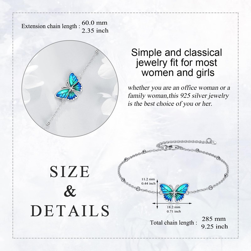 - ✨ Size ✨: The size of the silver butterfly anklet is 0.44 x 0.71 inches and the chain length is 9.25 inches, which is suitable for most anklet sizes of women. At the same time, the length can also be adjusted according to personal preferences to ensure comfort and beauty of wearing.