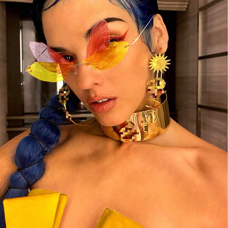- Unique Design: Personality Dragonfly shape Design, will perfect your , perk up your outfit. Stylish Frameless sunglasses can fits Small face shapes.