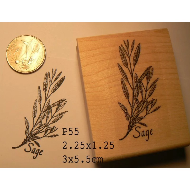 Dragonflylaser Sage herb plant rubber stamp WM P55