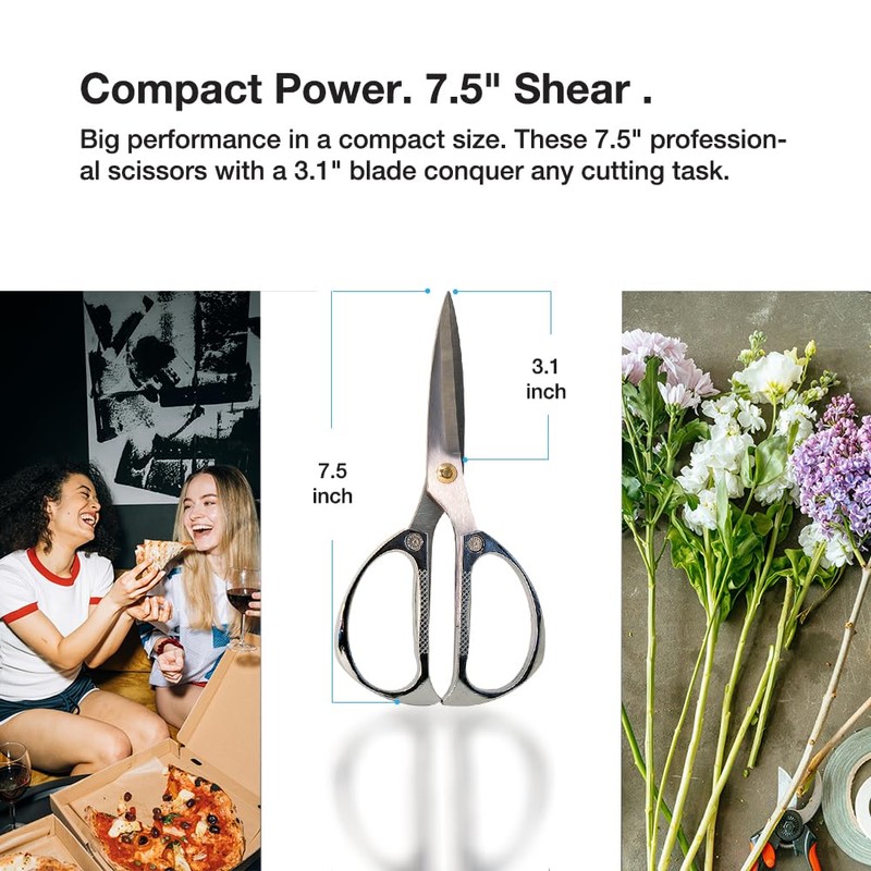 DRAGONFRUITEE All Purpose Kitchen Shear, Scissors for Home, Herbs, Sewing, Crafting and Office Cutting, Stainless Steel Razor Sharp Tip, Ergonomic Metal Handles, 7.5 inch, Silver
