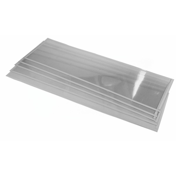 Five (5) pack of replacement protective light films for the Dragway Tools 260-gallon sandblasting cabinets. These replacement films cover and protect the light fixture inside of the sandblasting cabinet. The light films feature adhesive tape for easy installation. Films measure 37 in. x 11-1/4 in.