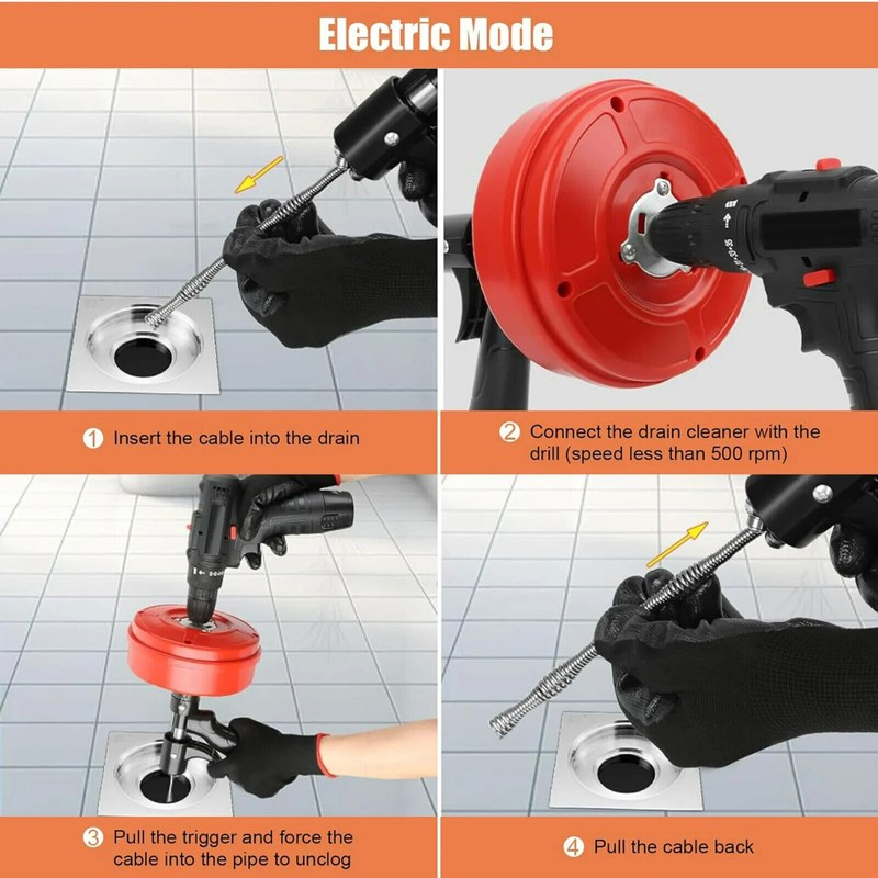 Drain Auger 25ft 1/4in Drum Plumbing Drain Snake Clog Remover Autofeed