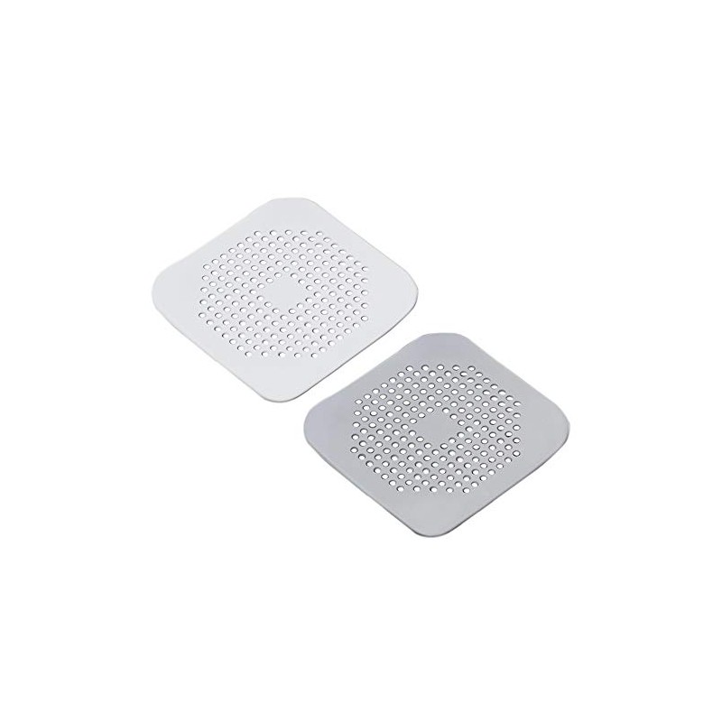 Drain Hair Catcher Square Silicone Trap Shower Drain Cover with Suction Cups for Bathroom Bathtub Kitchen Filter Flat Strainer, 2 Pack