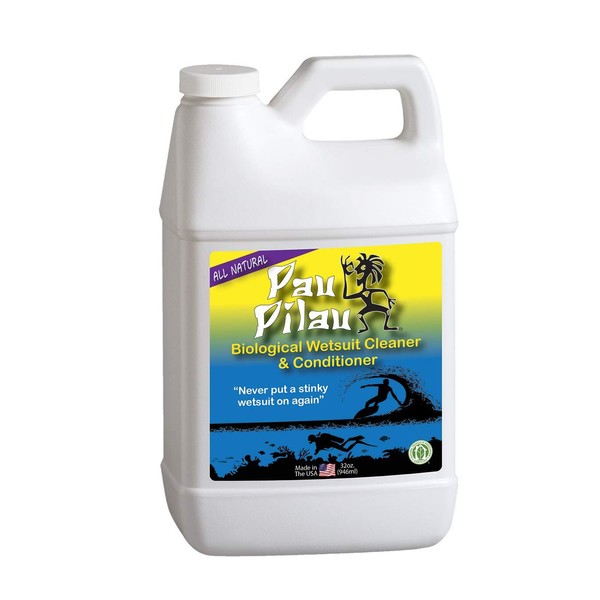Pau Pilau is a natural wetsuit cleaner formulated for use on wetsuits and other neoprene products. It is the environmentally safe way to not only clean your wetsuit, but improve the life of the neoprene as well. Pau Pilau is an economical, easy-to-use concentrate that will penetrate into the pores of neoprene and consume all foul smelling organic matter such as urine, mold and algae residue.