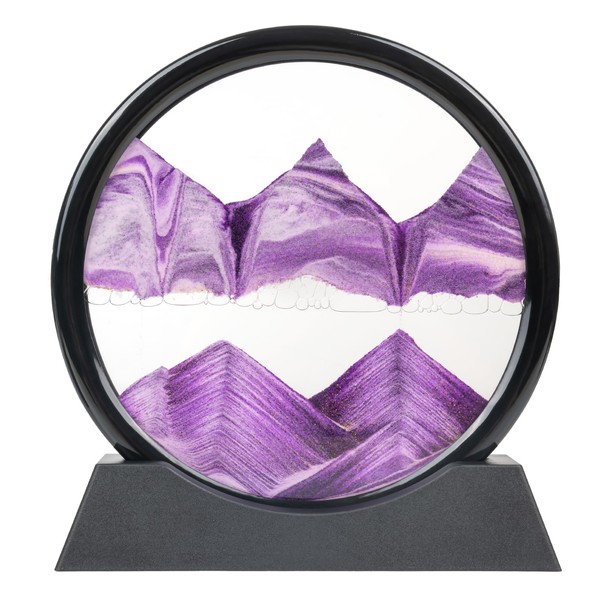 Drakswet Moving Sand Art Liquid Motion,Moving Sand Art Picture-3D Deep Sea Sandscape,Round Glass Frame Display Flowing Sand Relaxing Desktop Home Office Work Decor (Purple)