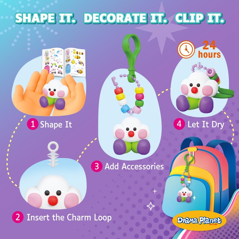 - Craft and Share: Kids can make colorful clay charms; decorate backpacks and keychains; share and collect with friends