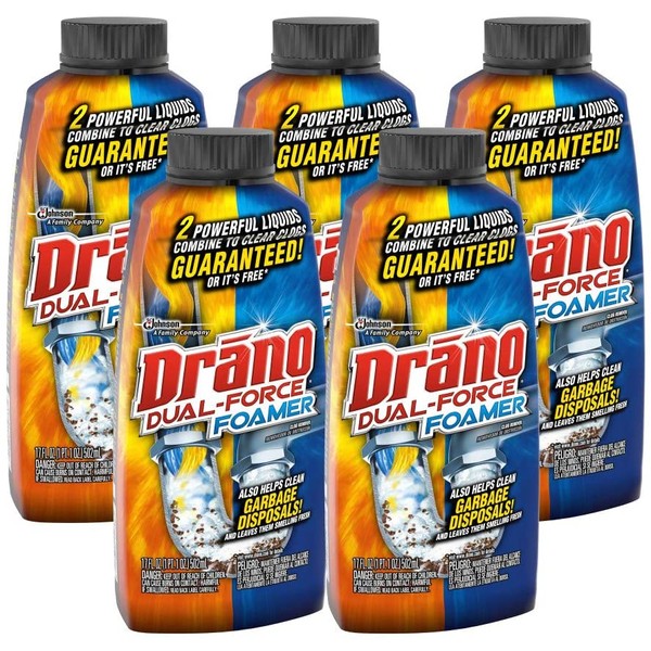 Drano Dual-force foamer clog remover, 17 fl Ounce (Pack of 5)