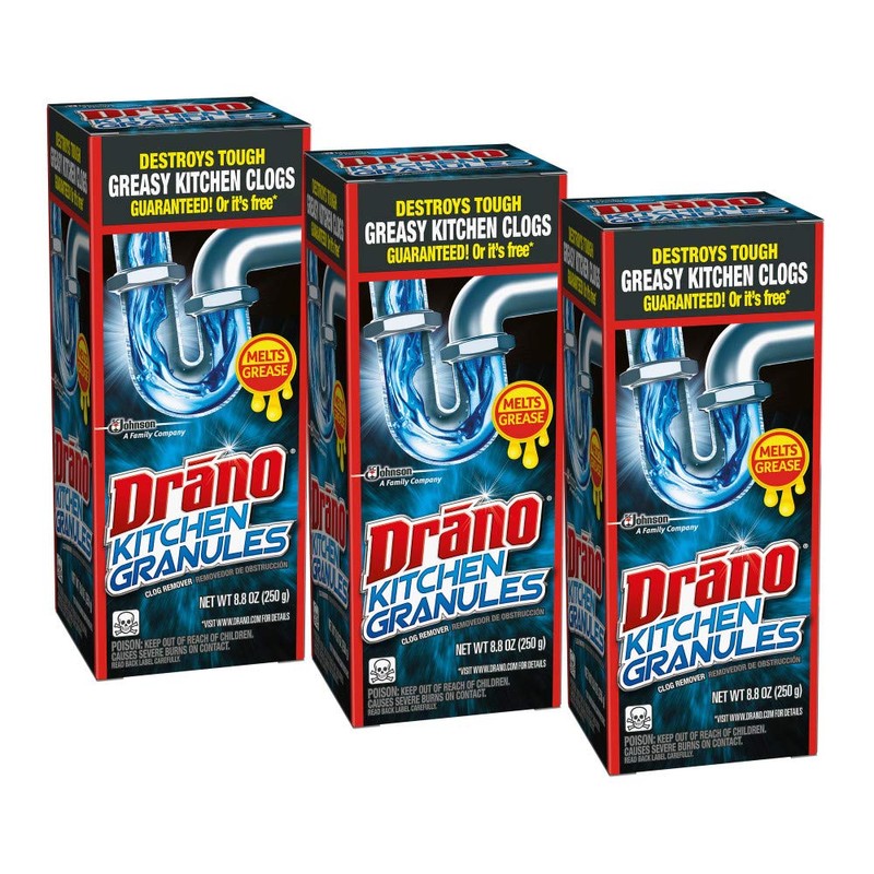 Drano Kitchen Granules Drain Clog Remover and Cleaner, Unclogs Blockage from Grease or Cooking Oil, 8.8 oz (Pack of 3)