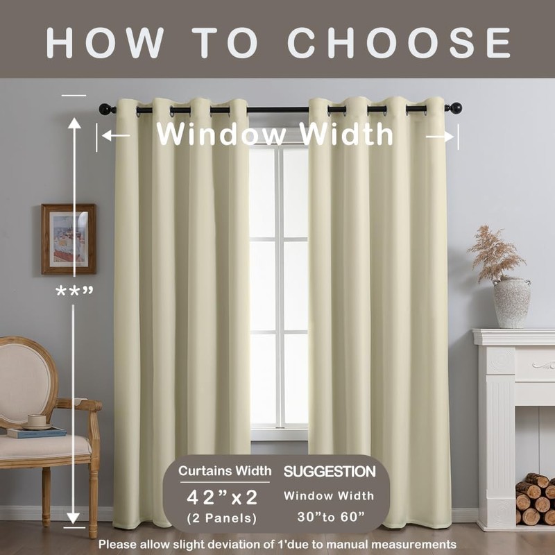 DrapeMaster Fire Retardant PFAS Free Curtains 96 inches Length 2 Panels Set Burg 100% Blackout Long Drapes for Bedroom Living Room Darkening Curtain Thermal Insulated Grommet (52x96 inch,Beige)