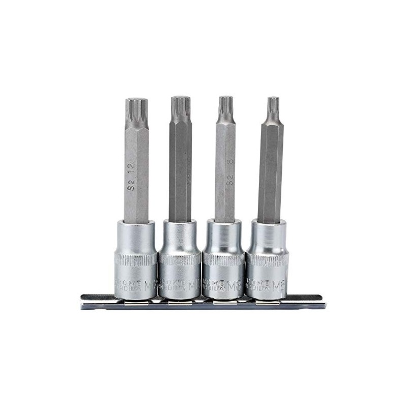 Draper 16350 1/2" Square Drive 100MM Long Spline Socket 4 Bits Set
