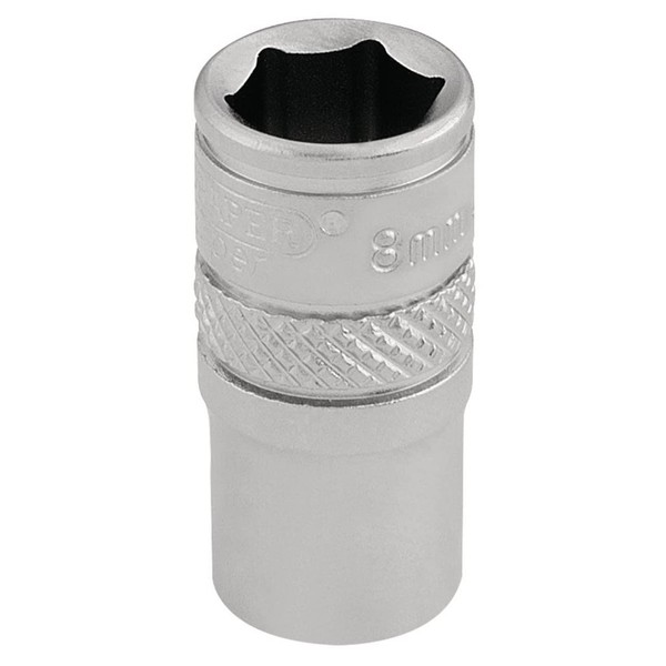 Draper 16513 1/4" Square Drive Micro Satin Chrome Metric Socket, 8 mm Size , Blue