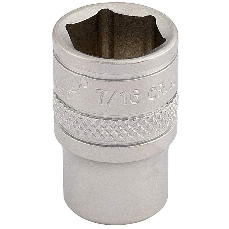 Draper 16525 1/4" Square Drive Micro Satin Chrome Imperial Socket, 7/16" Size , Blue