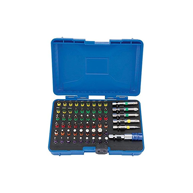 - Each screwdriver bit is attached with a plastic coloured ring for easy identification