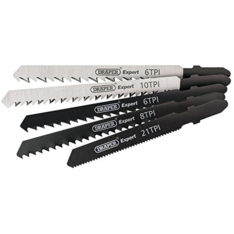 Draper 81734 Expert 5 Piece Assorted Jigsaw Blade Set, 230 V, Black and Silver