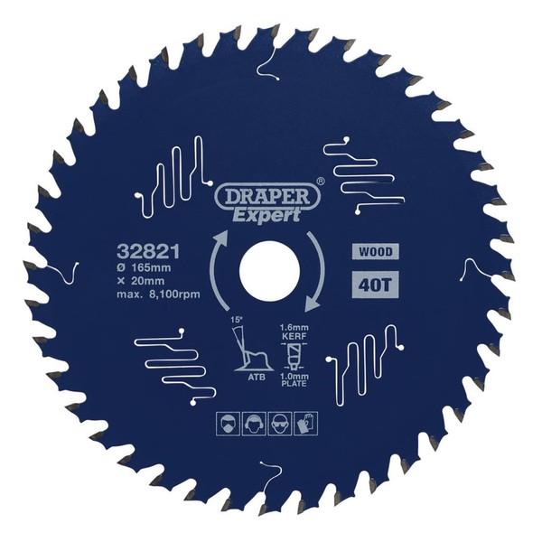 Draper Expert 32821 TCT Circular Saw Blade for Wood with PTFE Coating, 165 x 20mm, 40T