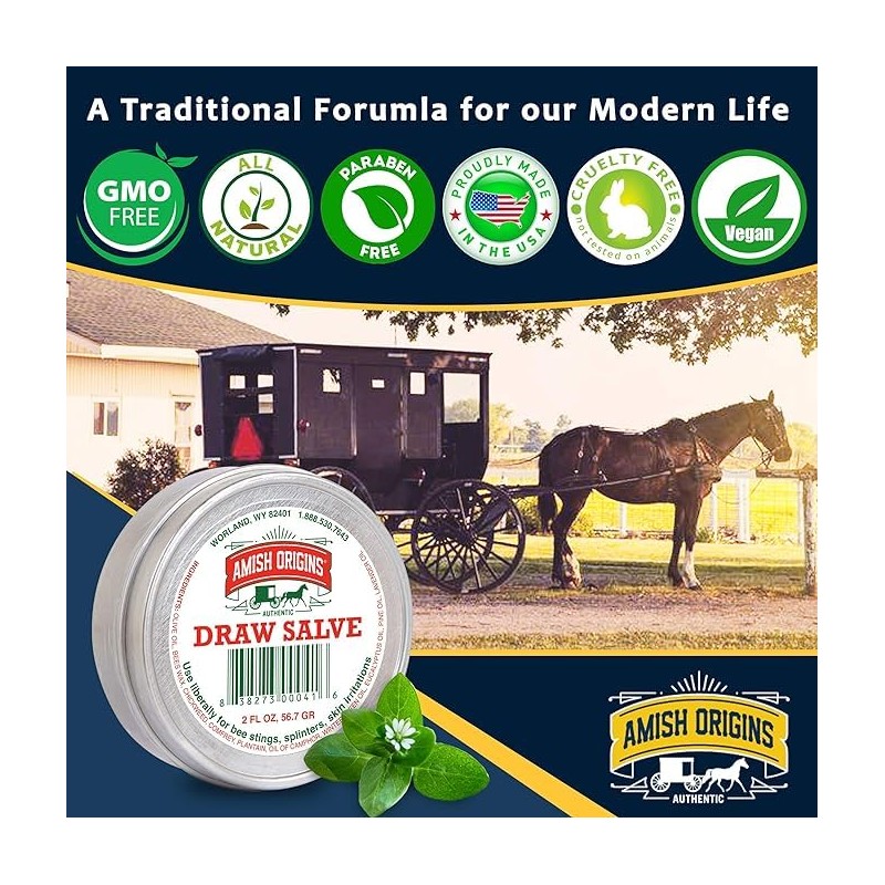 Draw salve ointment for bee stings, splinters, skin irritations by Amish orig...