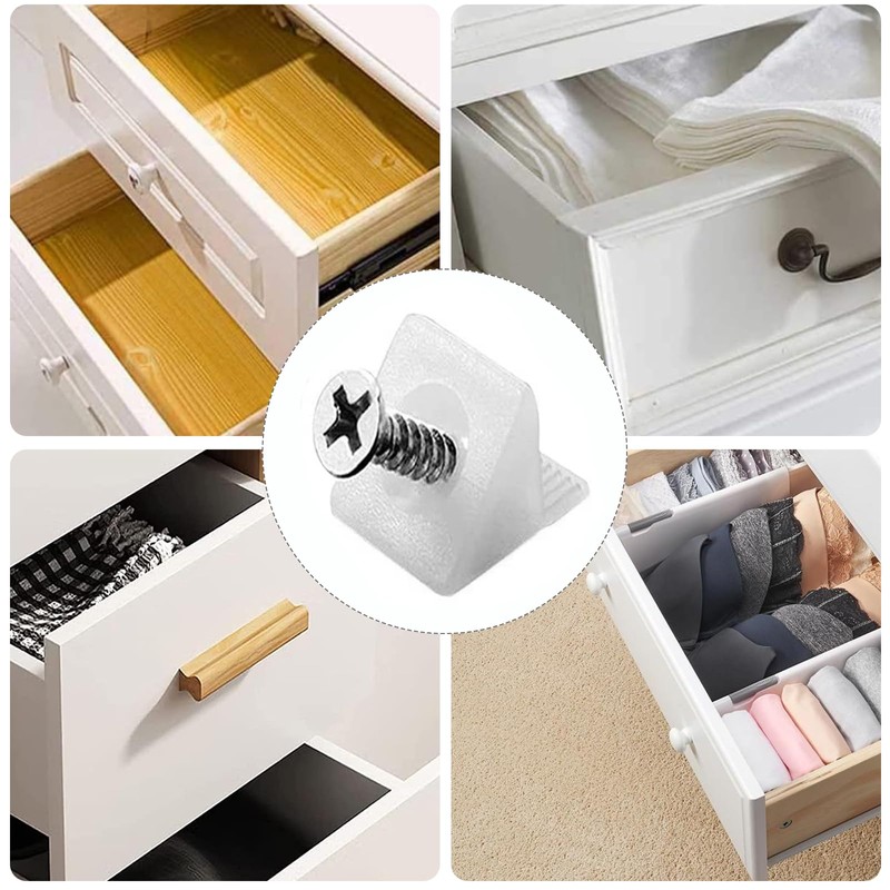 Drawer base reinforcement, 50 pieces back wall connectors, cabinet, cabinet back wall attachment, plastic back wall holder with screws, repair your slack dresser drawers