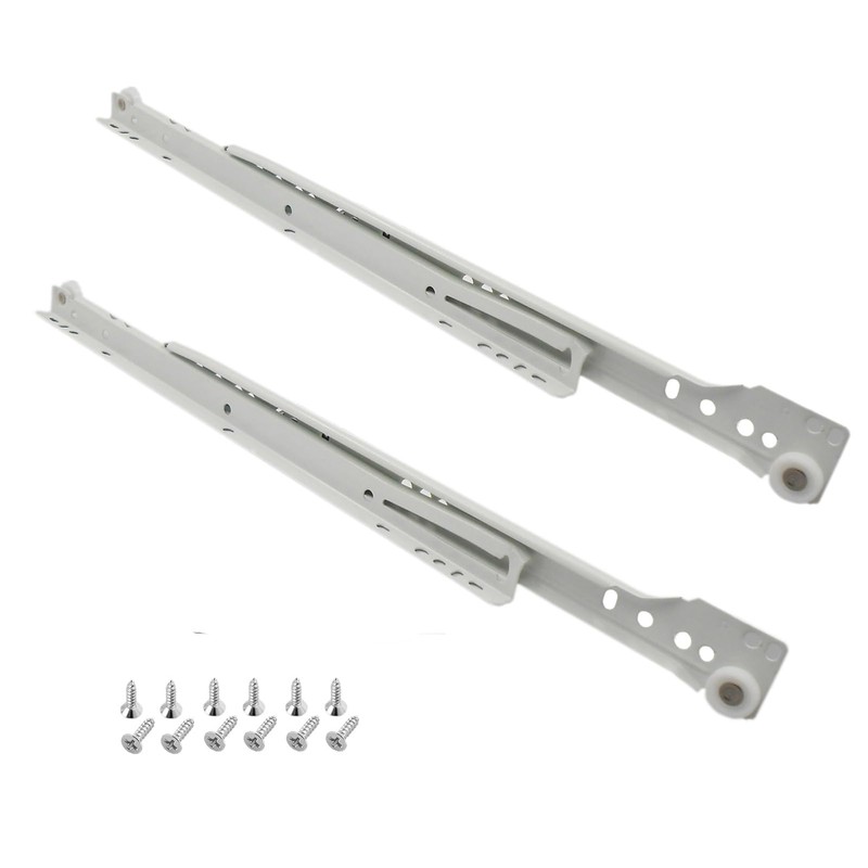 Drawer Runners 450 mm, 2 Pairs (4 Pieces) Roller Slide Guides, Drawer Rail System with Partial Extension, Drawer Guides with 24 Screws, Rails for Drawers, Drawer Runners White, up to 20 kg