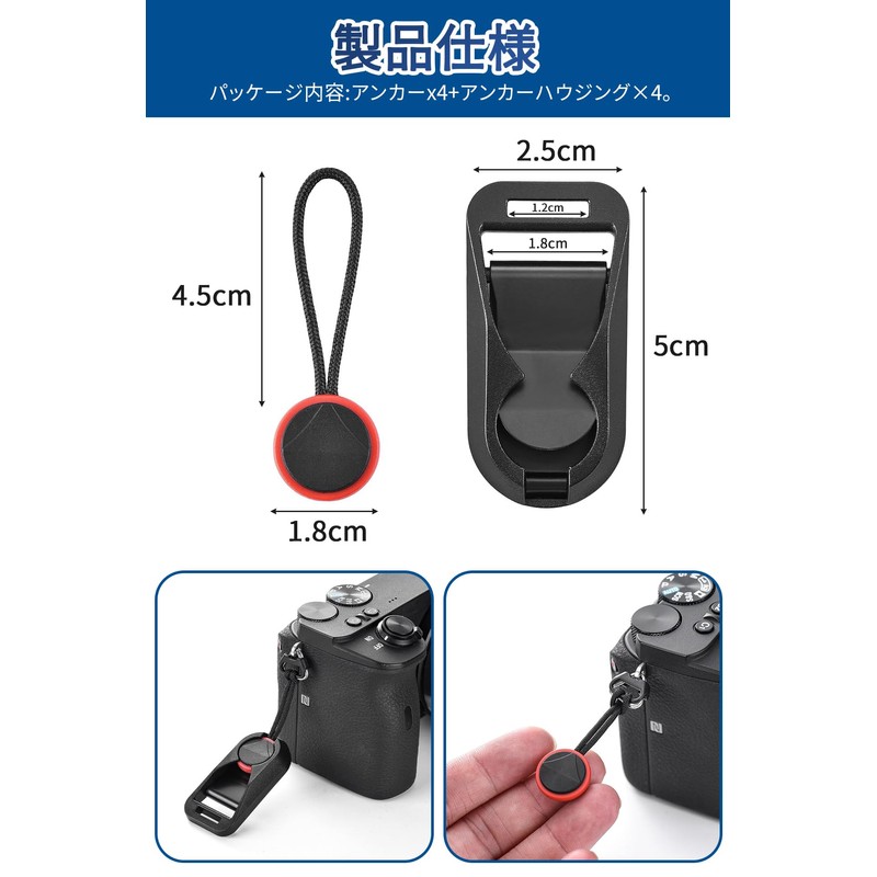 - Product Specifications: Set of 4 (Colors: 1) Black + Red, 2) Black + Black. Lightweight and compact design, fits most camera straps with standard 18mm hole