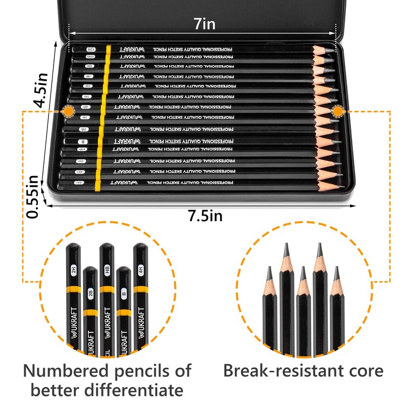 - Best for Every User – Wukrfat artists pencils set is an ideal offering for an accomplished draughtsman in your life. Comes with assorted hardness which makes it perfect for illustrators, artists, and beginners, whether they want to make precise lines or free style sketches