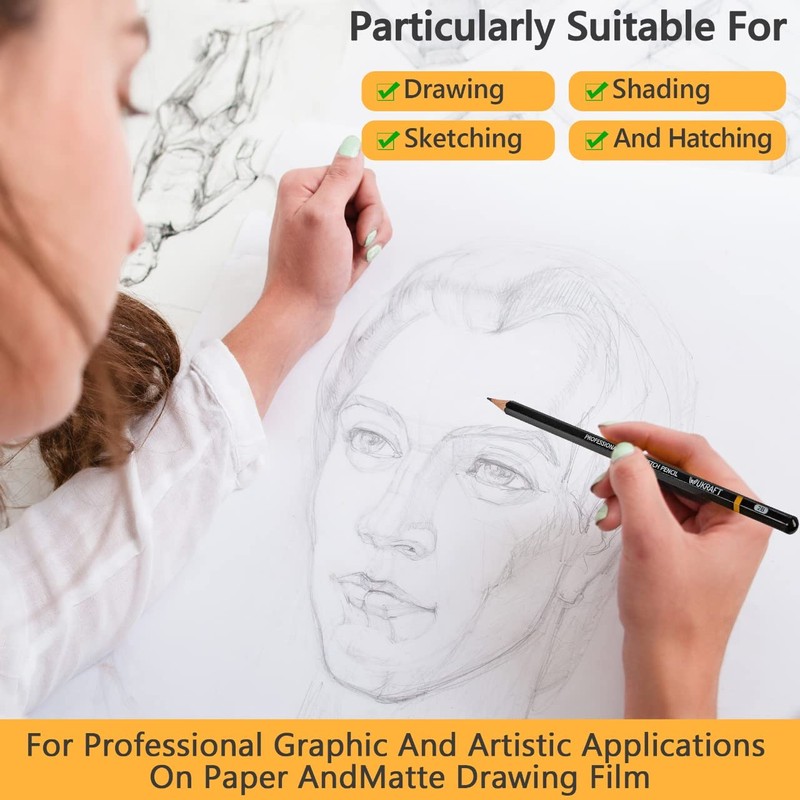 - Wide Range of Shades – This set of sketch pencils for drawing includes all essential grades 2H, 4H, 6H, 12B, 10B, 8B, 7B, 6B, 5B, 4B, 3B, 2B, B, HB pencils that deliver different shades of black & gray making them perfect for blurring & smudging