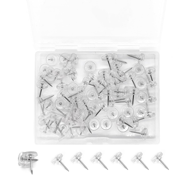 - Number of transparent drawing pins: 60 drawing pins per plastic box, enough for daily work, data storage in the office and organising files. Size: approx. 0.63 inch/1.6 cm.