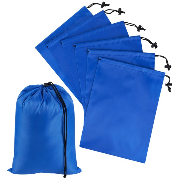 - Convenient set of 6 durable drawstring bags made of strong 210D nylon