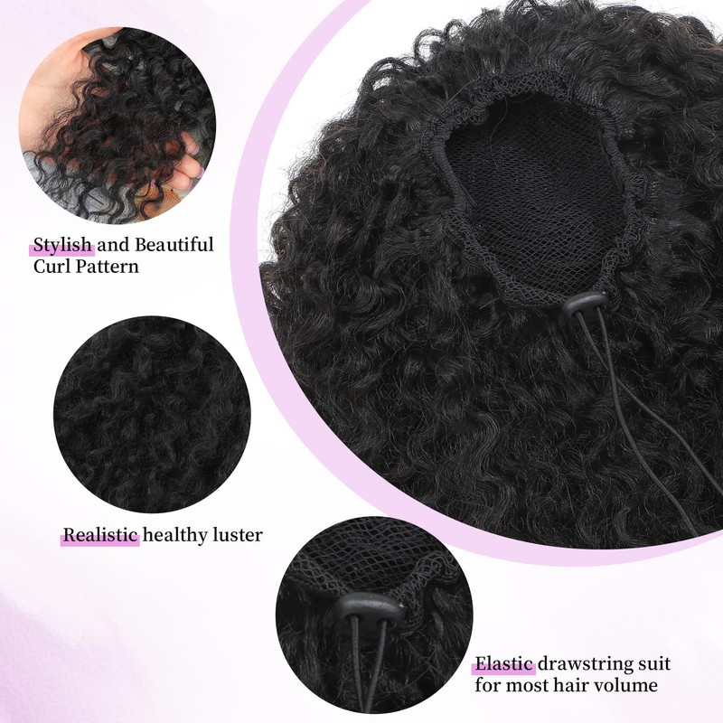 Drawstring Curly Ponytail Extensions for Black Women Protein Silk Fiber Human Hair Soft Feeling Afro Kinky Curly Hair Puff Pony tails Lightweight, Soft Natural Budget-Friendly for Daily Styles