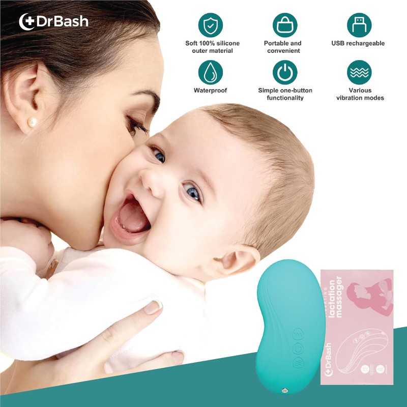 DrBash 2-in-1 Lactation Massager – Soft Breast Massager for Breastfeeding, Heat + Vibration for Milk Flow, Engorgement & Clogged Duct Relief – Apps Controlled (Teal)