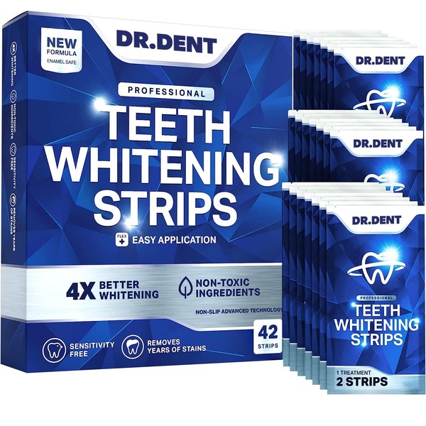 DRDENT Professional Teeth Whitening Strips 21 Applications - Enamel Safe - No Pain Sensitivity - Professional Teeth Bleaching Strips - 42 Strips + Mouth Opener Included