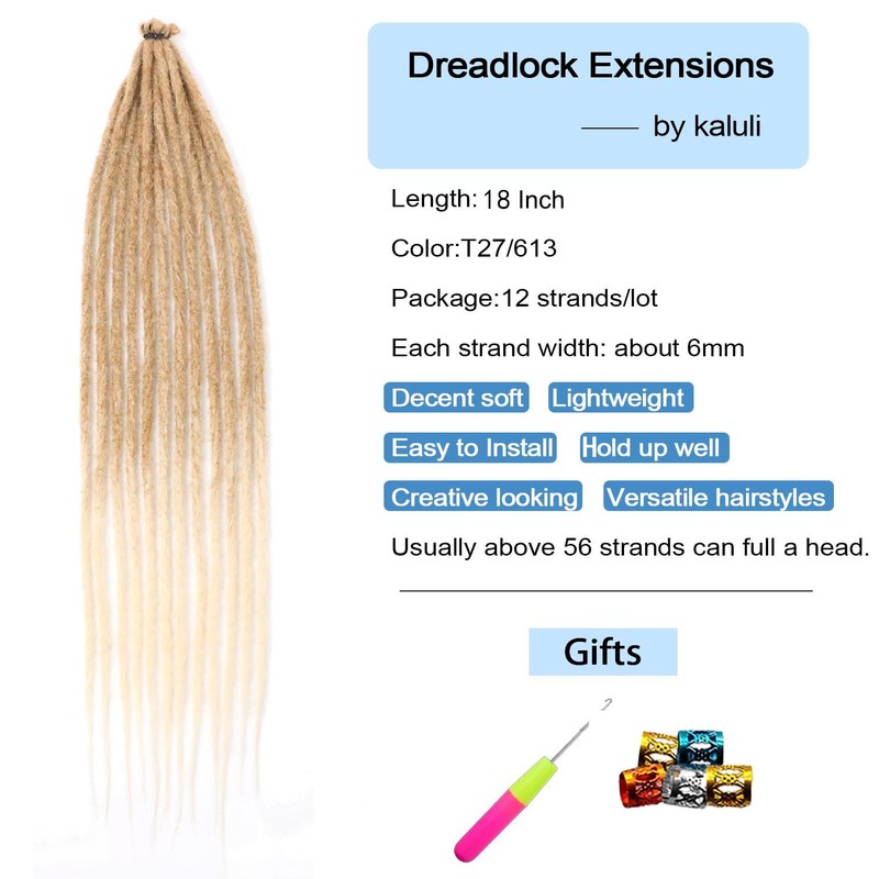 Dreadlock Extensions Synthetic Hair Extensions Dreads Locs Crochet Braids Soft Locs Faux Locs Crochet Hair (T27/613, 18'' Straight(12 Strands))