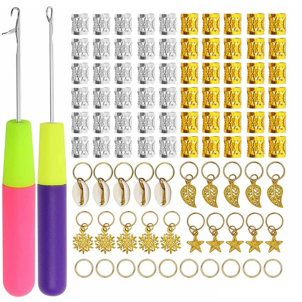 - ✅【Enough Full Range of Tools and Different Sizes】The Package contains different styles, sizes and hooks, according to the thickness of the braided hair, you can choose from Crochet tool one of the fit sizes, it allows to repair and fixing locs so much.And the gold silver hair extension ring can be used when braiding hair.