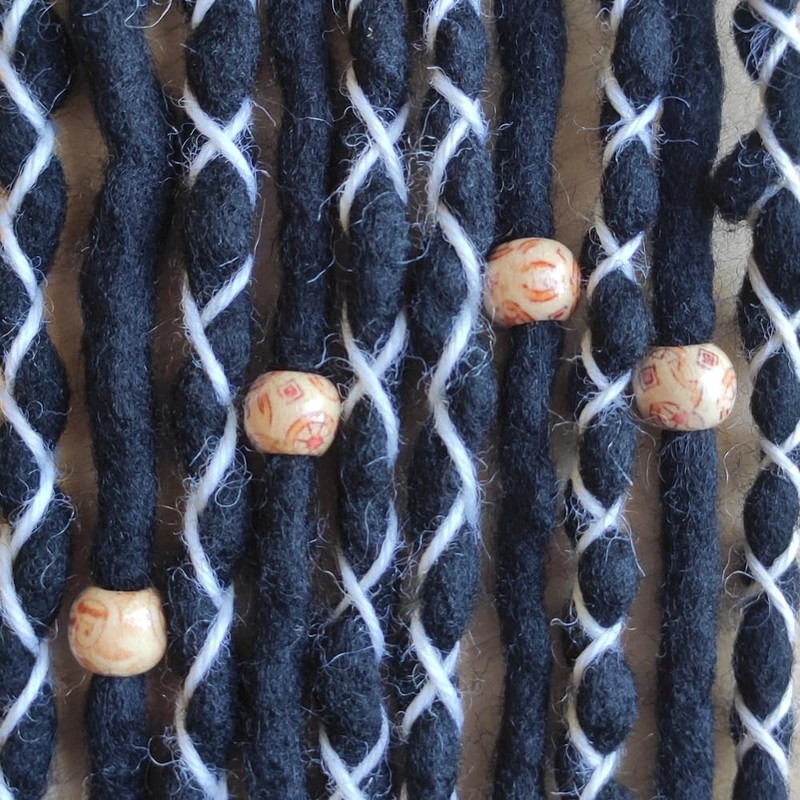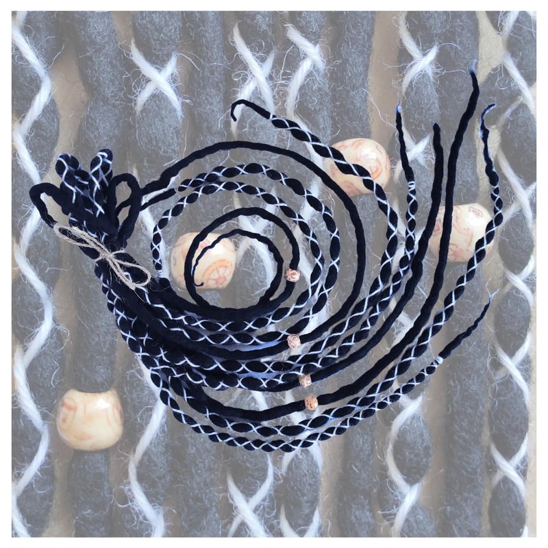 Dreads for Braiding - Wool Dreadlocks - Extensions Made of Real Hair (Wool) from Sheep - Natural Product Made of Sheep's Wool (Black Beauty Decorated, 5 Strands)