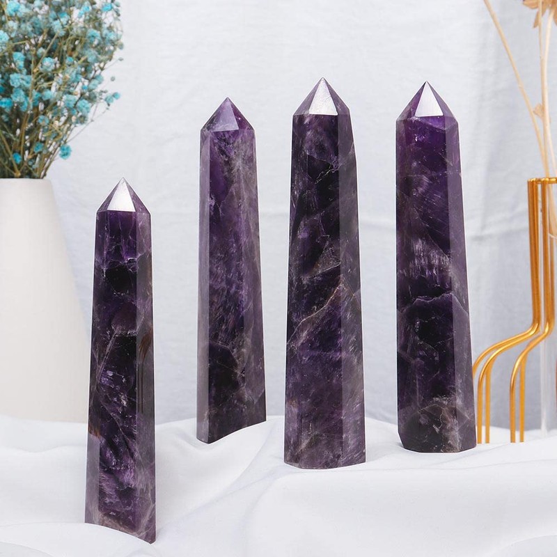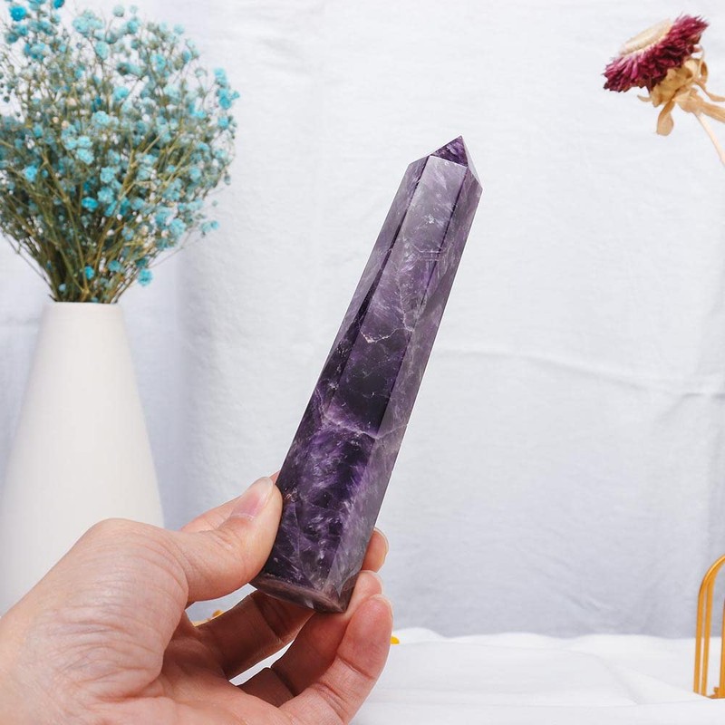 Dream Amethyst Natural Healing Crystal Tower 5.9"-6.3" 6 Faceted Single Point Chakra Crystal Stone Meditation Home Decor Collection Gift