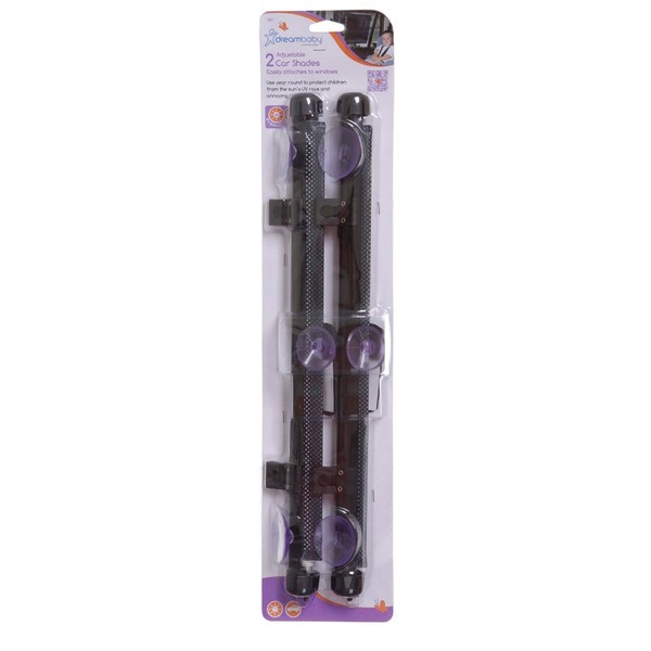 Dreambaby® Adjustable Car Window Shades are suitable for stationary or wind down windows. Unrolls to approximately 35.7cm (14.06") wide by 48cm (18.9") high.