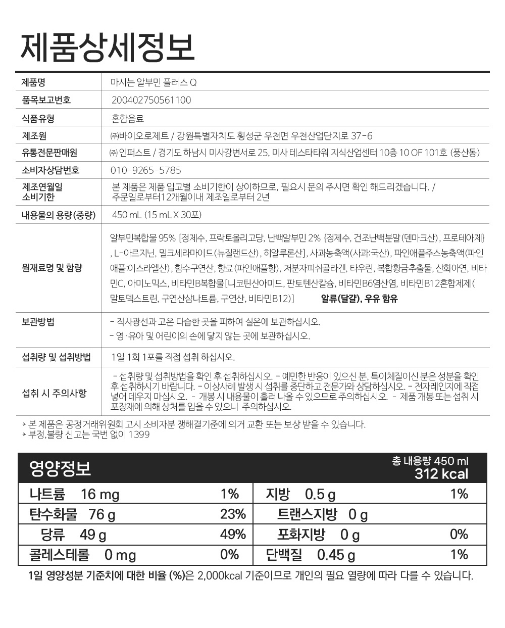 드림이음 마시는 알부민 플러스Q 15ml x 30포 5박스