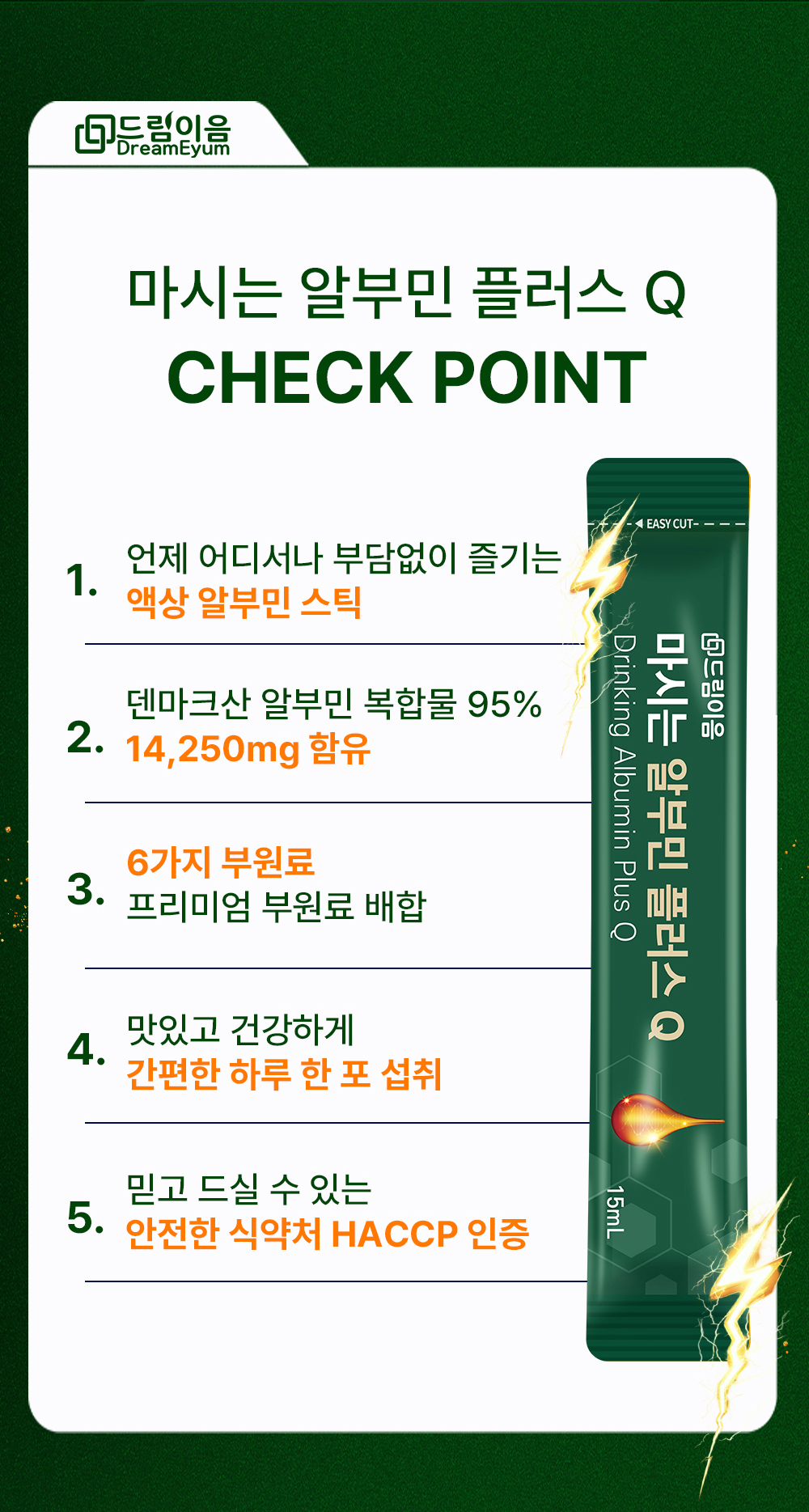 Dream Eum Drinkable Albumin Plus Q 15ml x 30 sachets, 5 boxes / 드림이음 마시는 알부민 플러스Q 15ml x 30포 5박스