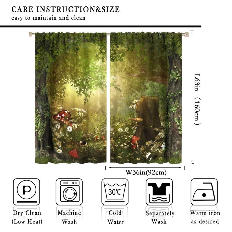 Dream Forest Curtains Beautiful and Charming Fairy Tale Lush Forest Land Mushroom Stumps Flowers Suitable for Kitchen Blackout Window Drapes Decoration 2 Panels Green 72x63in