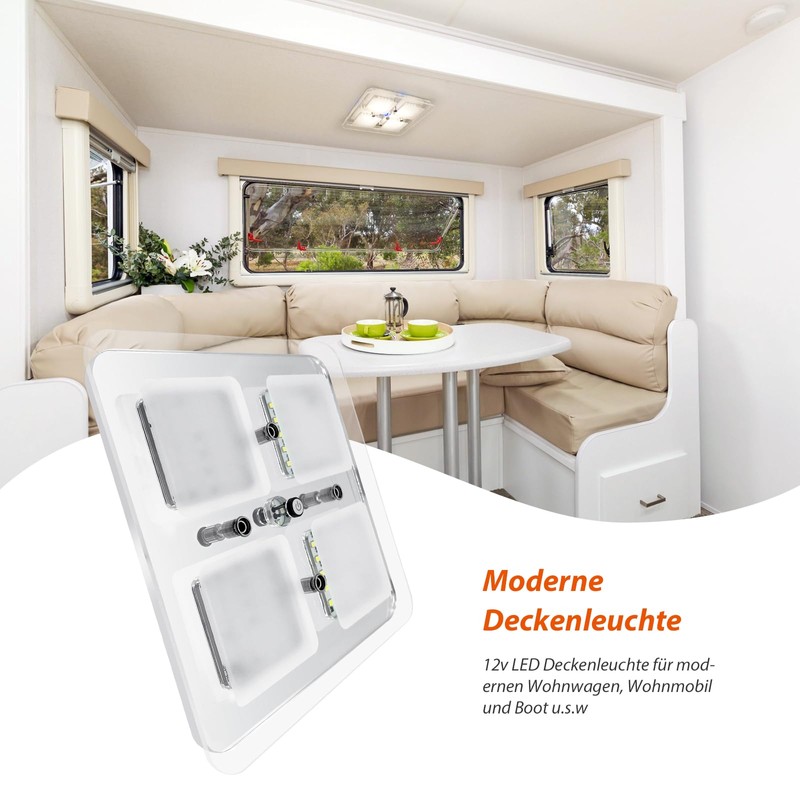 • Caravan ceiling light: This 12 volt interior light is suitable for caravans, motorhomes or boats with 12 volt DC supply. Can also be used as a ceiling light. Size: 18 x 18 x 2.1 cm