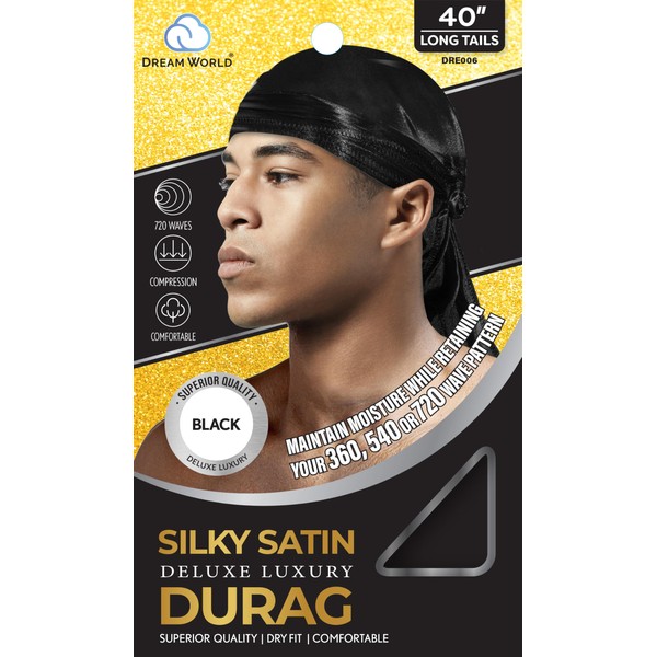 Dream Men's Silky Satin Deluxe Black Du-Rag (Pack of 3)