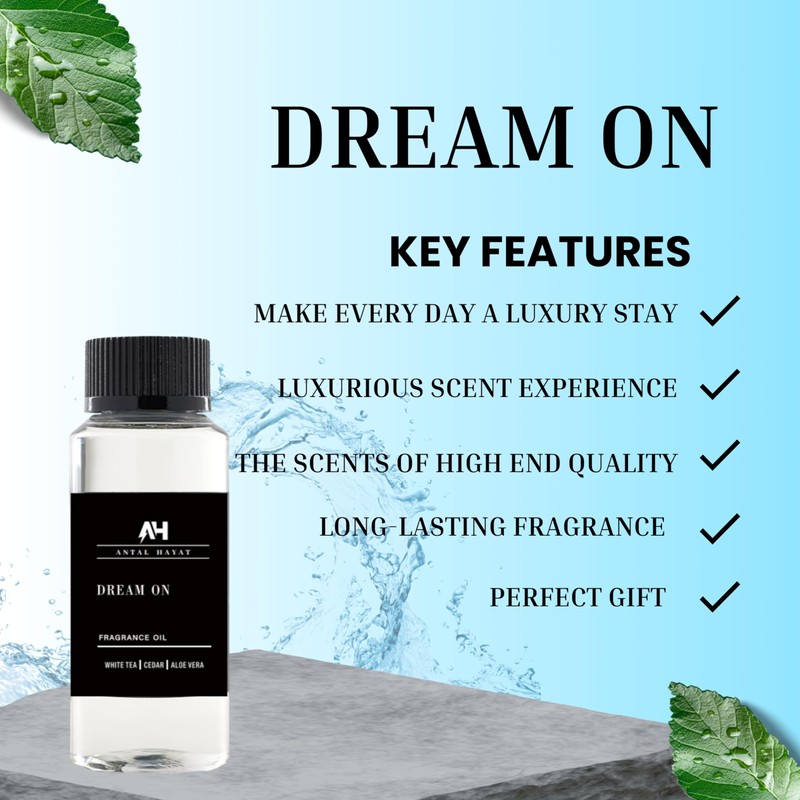 Dream on Essential Oil Scent 120mL - Luxury Home Aromatherapy Diffuser Oil - Formulated with Hints of Bright White Tea, Sweet Vanilla, & Earthy Cedar - Inspired by One Hotel Miami Beach