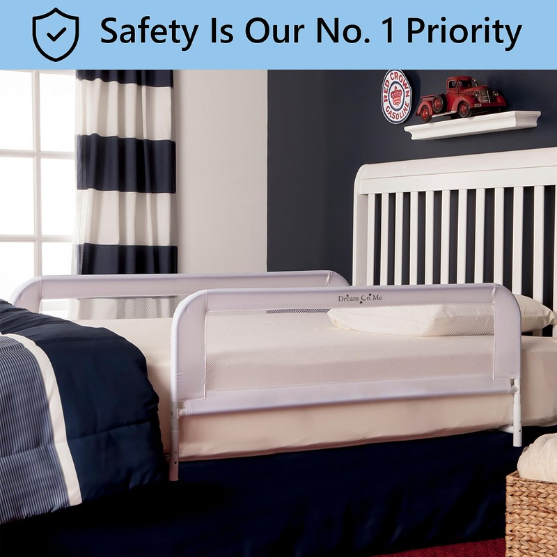 - EASY TO INSTALL & PORTABLE: With a no-tool assembly, set up the Dream On Me Adjustable Mesh Bed Rail in seconds It is lightweight at 3 lbs, allowing for easy portability