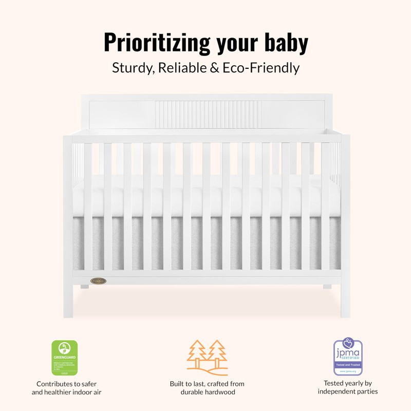Dream On Me Ivy 5-in-1 Convertible Crib, JPMA Certified, Converts from a Baby Crib to a Toddler Bed, Daybed, and Full-Size Bed, Painted with Water-Based, Non-Toxic Paint, White