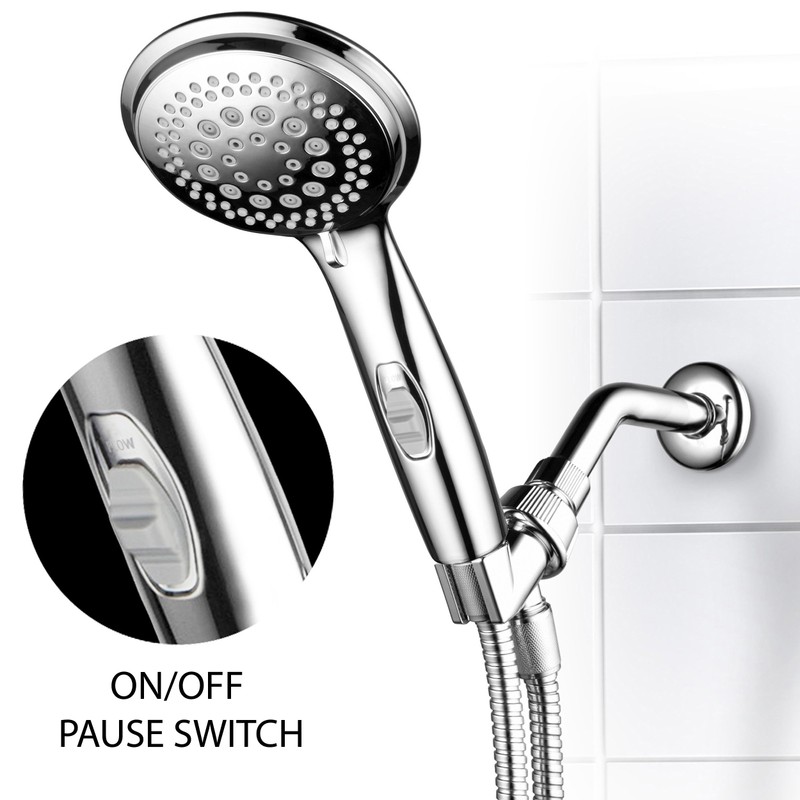 - Multi Function Luxury Hotel Style Handshower with Water Saving Patented ON/OFF Pause Switch and Extra Long Stretchable Shower Hose; Can be used as Overhead or Handheld Shower!